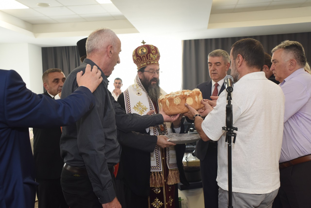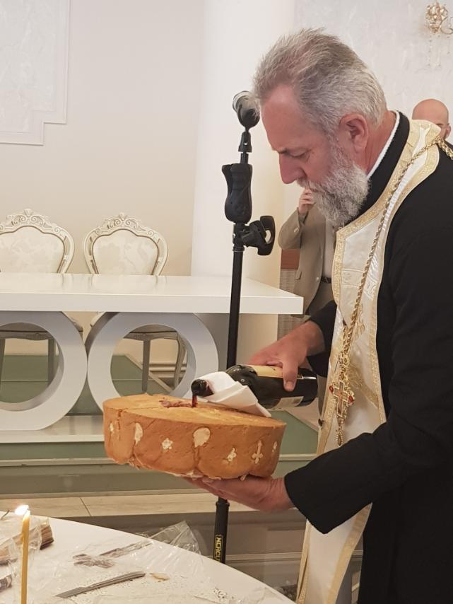 Посебну част указао нам је Епископ жички, г. Јустин, који је пресекао славски колач.