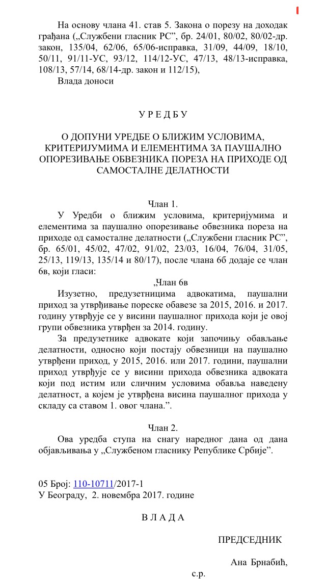 Са уредбом ја немам проблема, јер по томе како ми је израчунато и овако сам био у преплати, али преко ноћи донетим допуном чл. 6.в. који је недоречен и уопште није се мислио на специфичне случајеве (и ако сам их на време упозорио у Београду и то писмено). Сада ја треба да платим највећи порез и допринос као пензионер за три године од кад сам пензионер и имам дуга од 6-700.000 динара са каматама. Колегинице и Колеге, знам да свако ћути јер највећи број вас су добро прошли, али за тих неколико несретника требали су додати том чл.в. да уредба се директно примењује не од 2018.годибне на адвокате који су отиишли у пензију са највећим порезом 2014. и наставили са радом, да не плаћају по 2014.год., јер њима су требали скунути минимум 60 %. Ко је ту крив. Моја комора и огранак у Суботици није ни узео за себе толико снаге да ми одговори. Иначе по мом знању У Зрењанину има 2, у Субитици два и ја у Општини Ада, који се из Београда се и не види (наравно), да ми бар одговоре. Такве одговоре добијам од Београда до Суботице, да ето немаш среће. После 43 година рада у струци могу да закључим да на крају “каријере” право и правда све то зависи од среће. Поздрав свима.